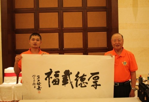 (臺灣前防務(wù)部副部長王文燮上將為公司題字并合影留念)