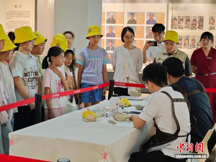 觀(guān)眾通過(guò)現(xiàn)場(chǎng)互動(dòng)了解陶瓷文物保護(hù)修復(fù)技藝。湖北省博物館供圖