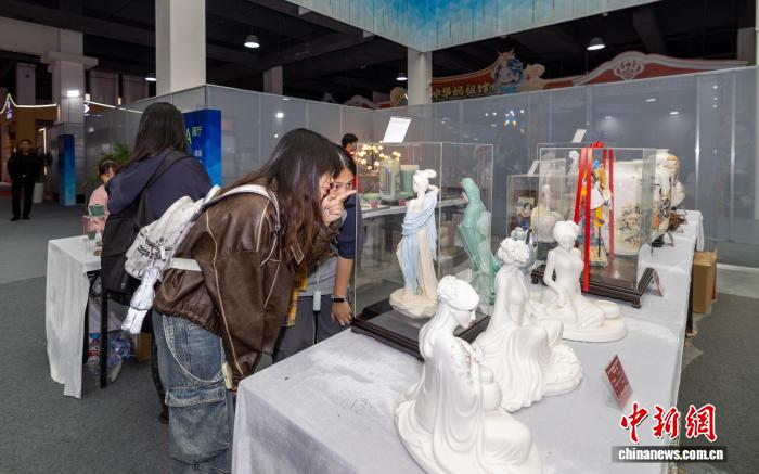 30日,游客正在參觀2025海峽兩岸(莆田)工藝品博覽會(huì)展品?!£惐?攝